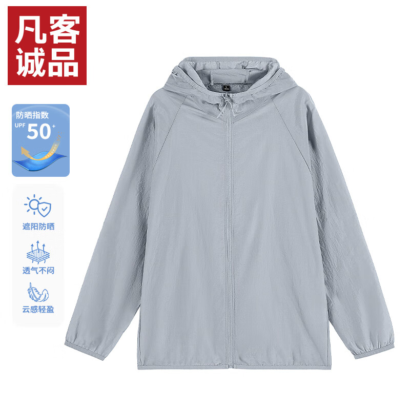凡客诚品凡客官方店防晒服男夏日轻薄防紫外线连帽夹克 银灰 3XL