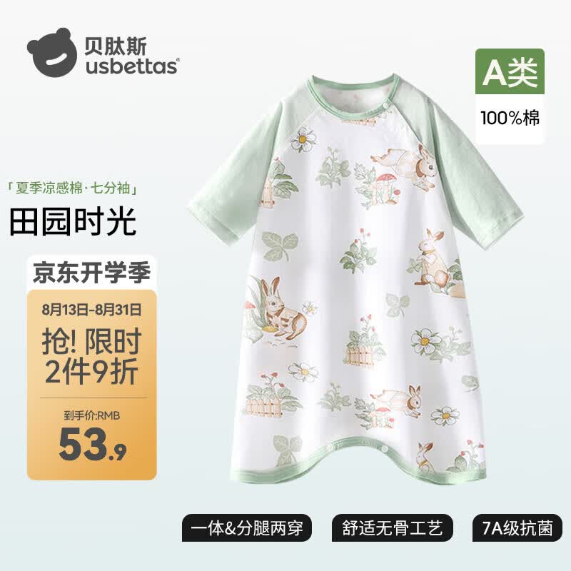 贝肽斯婴儿衣服夏季儿童七分袖连体睡衣男女宝宝空调房可穿防踢被 田园时光 80 cm【适用身高75-85cm】