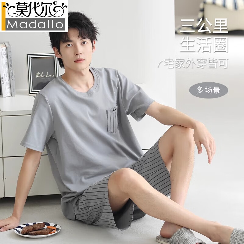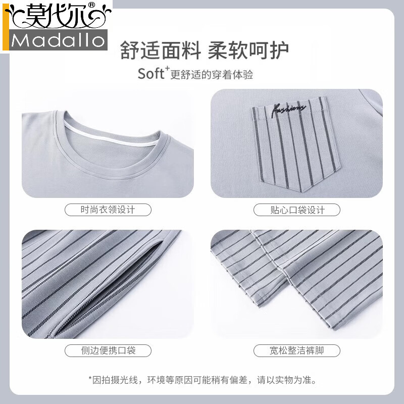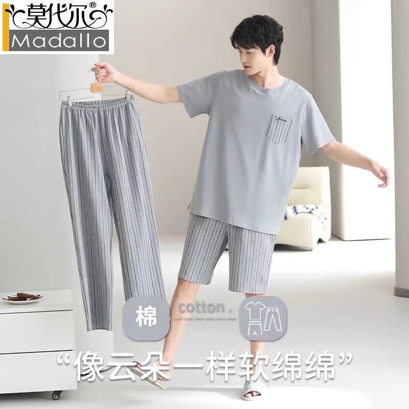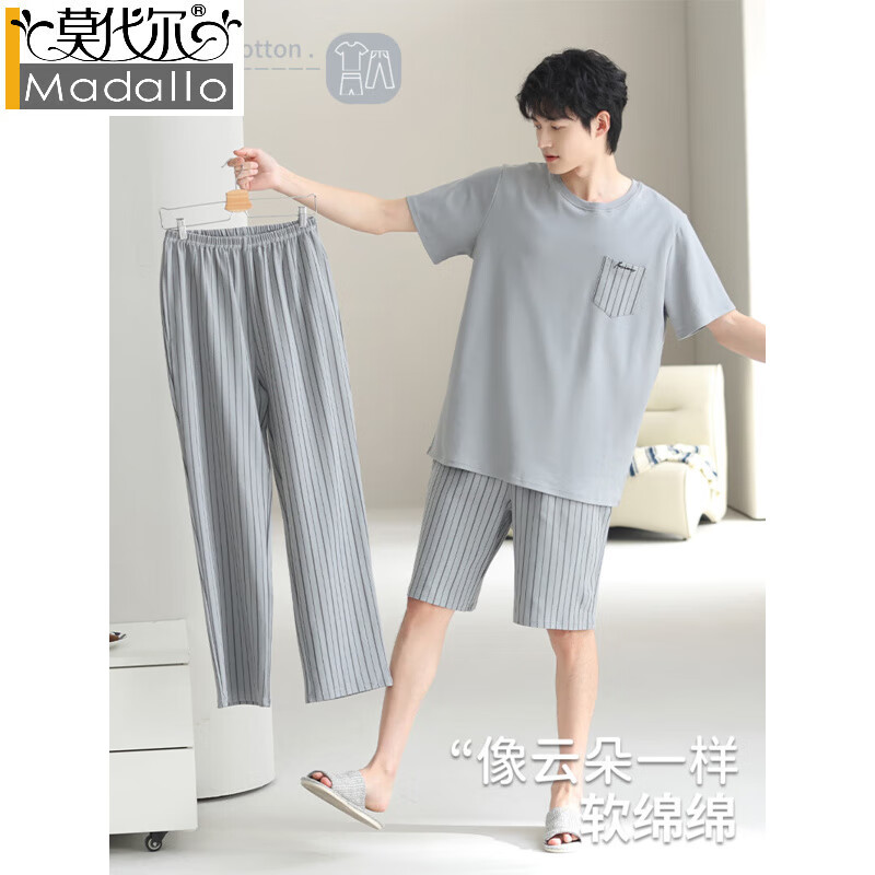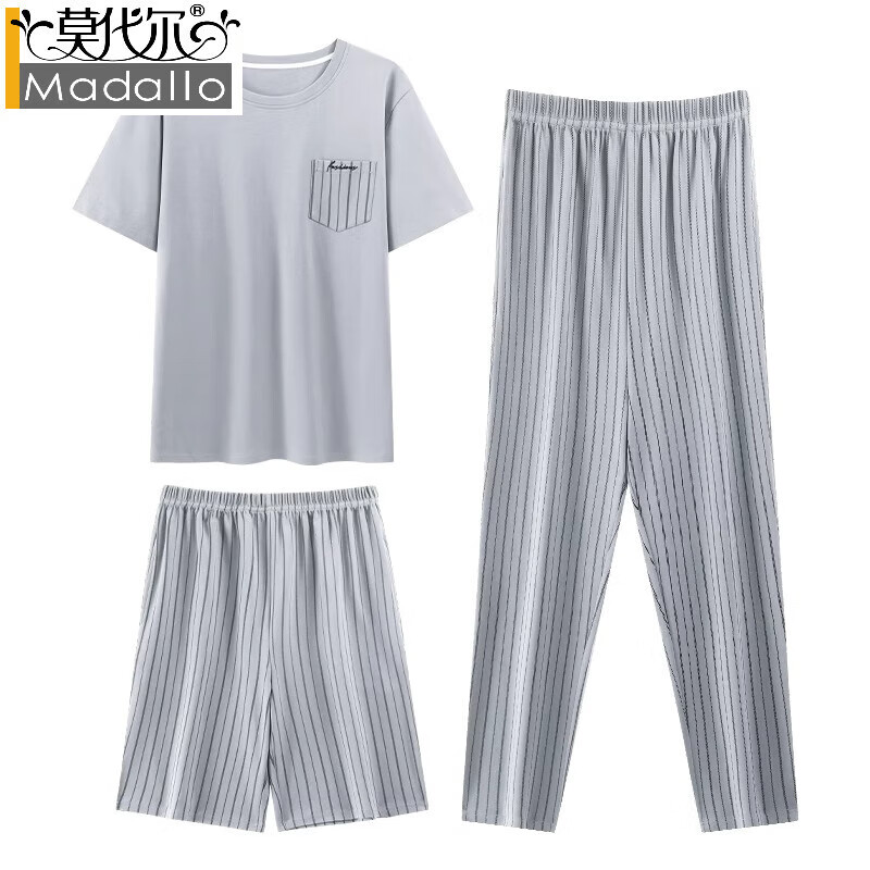 莫代尔新款舒适男士睡衣夏季纯棉短袖长裤休闲大码薄款青年家居服三件套 31103主图款 L 【适合体重100-125斤】