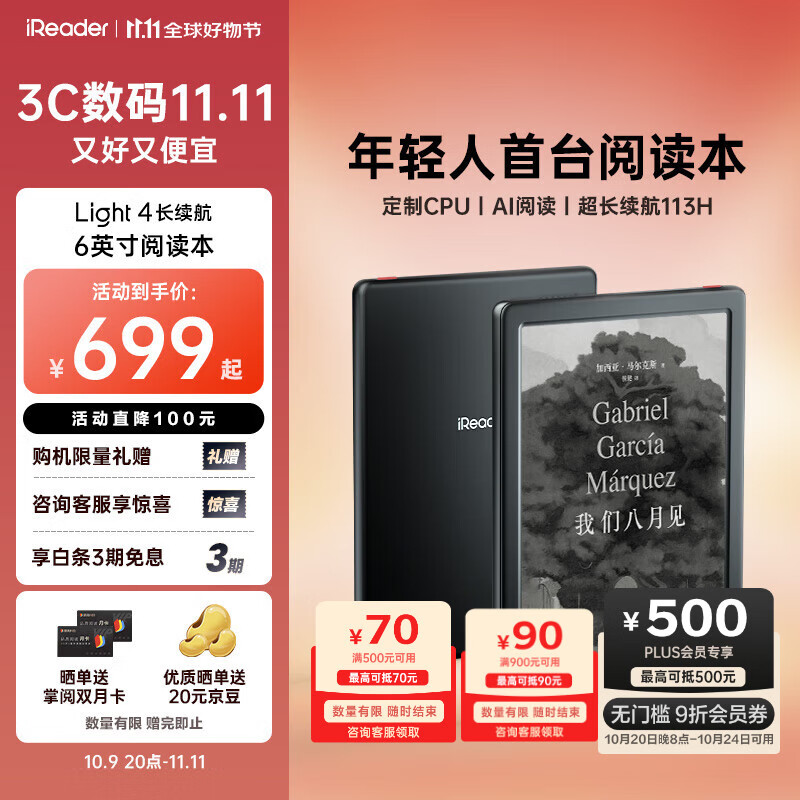 掌阅(iReader)Light4 长续航 6英寸智能阅读本 电子书阅读器 墨水屏电纸书 平板电脑学习看漫 便携笔记本 沉墨