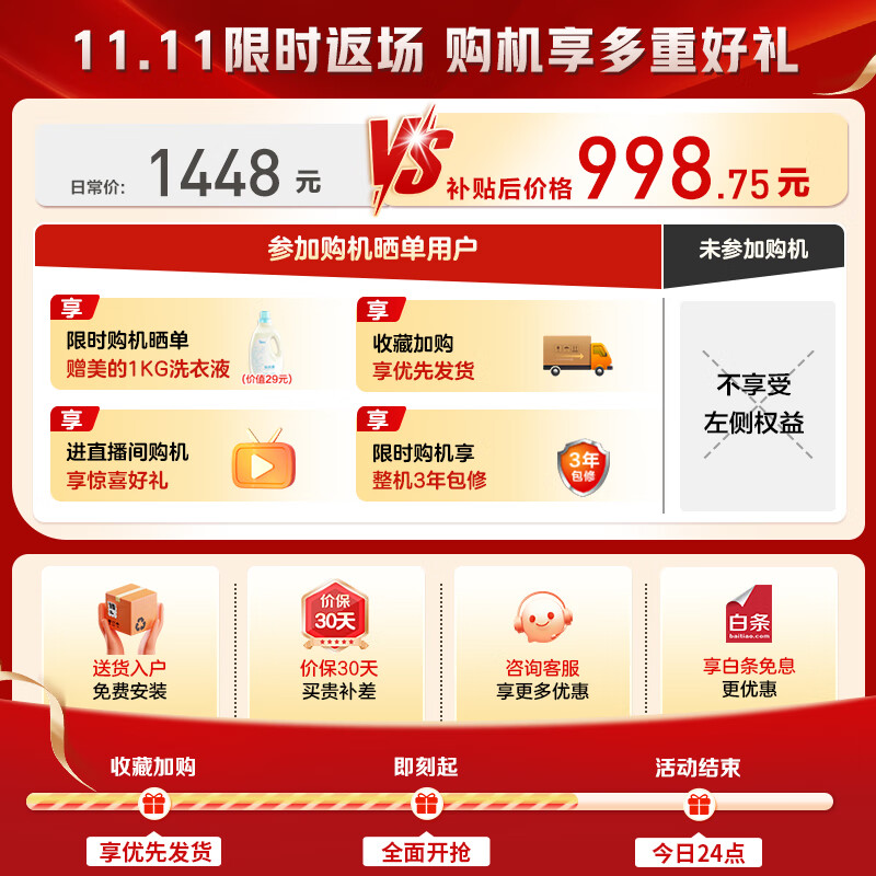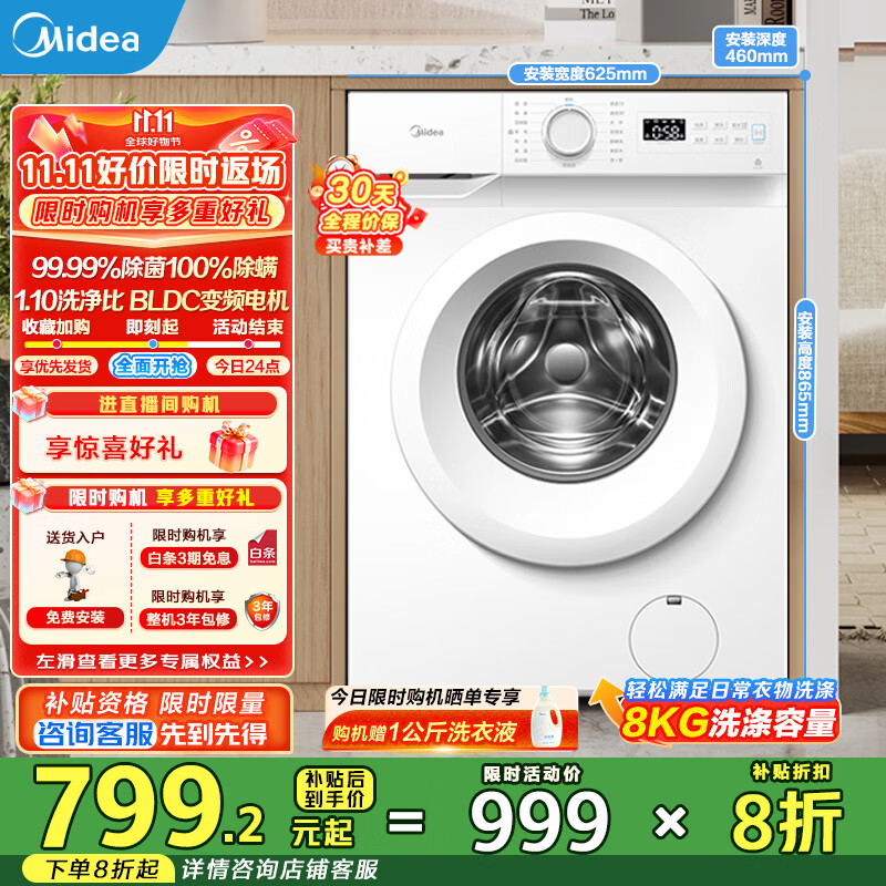 美的洗衣机旗舰店手机扫码,领券购买