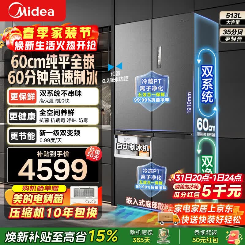 美的智能冰箱旗舰店手机扫码,领券购买
