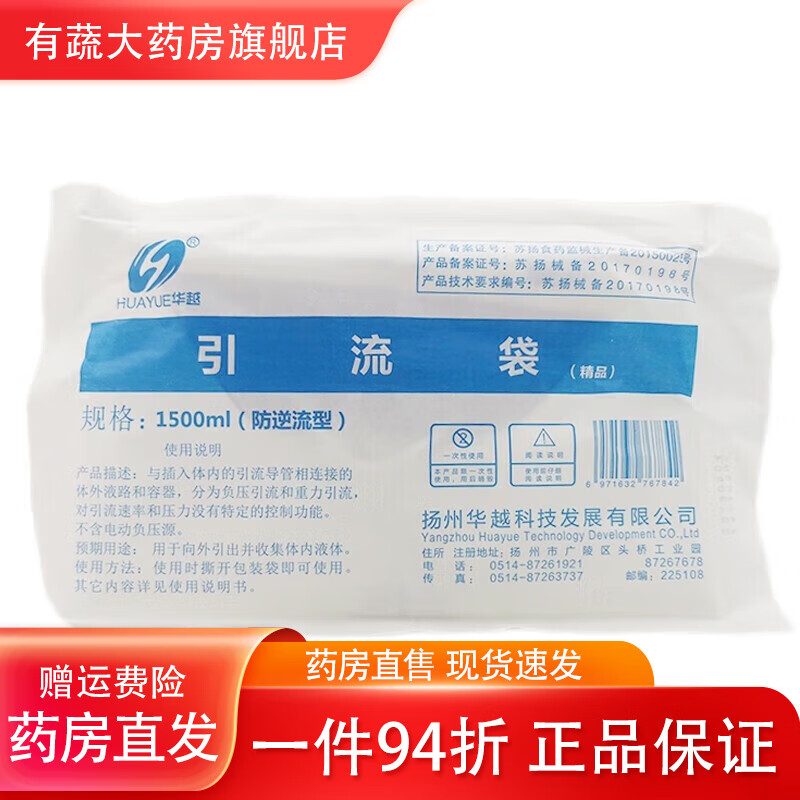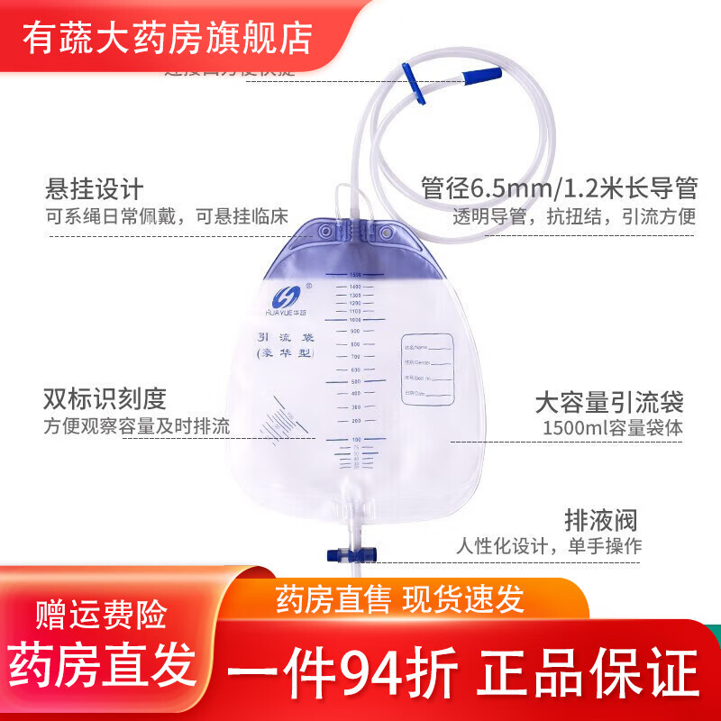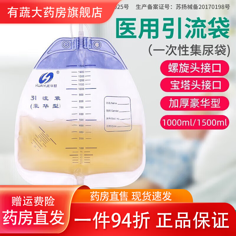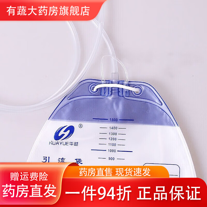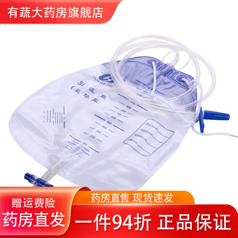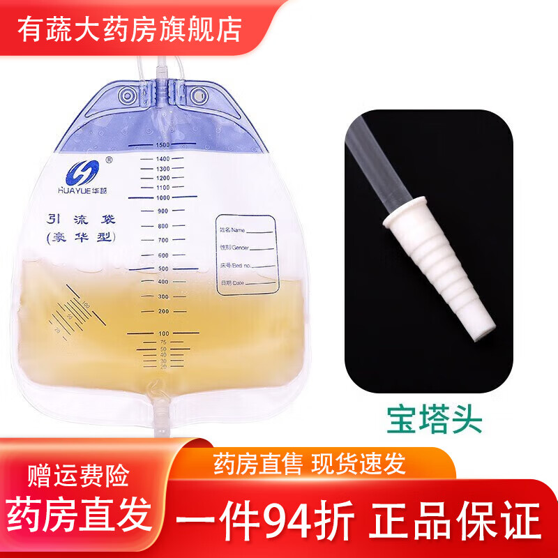 华越(HUAYUE) 一次性医用引流袋 防逆流袋导尿管储液尿袋导尿袋小便失禁护理袋 1500ml[宝塔头]加厚款1个