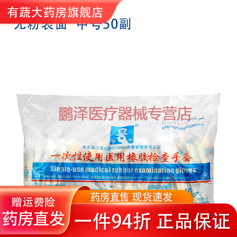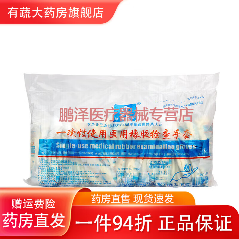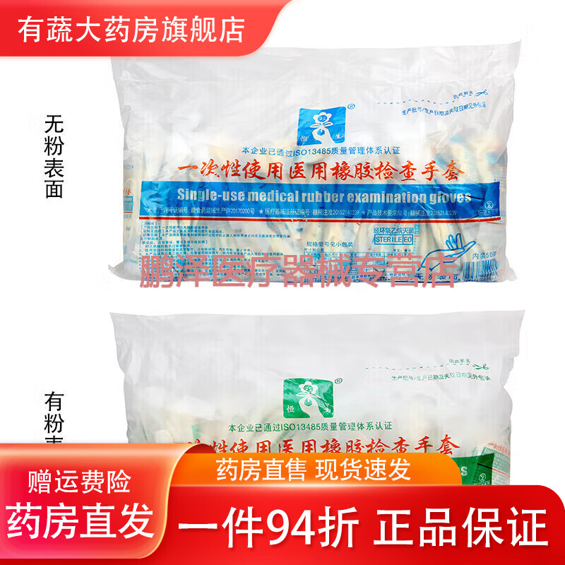 恒生恒生一次性使用医用橡胶检查手套无菌单独包装乳胶手套无菌手术用 恒生检查手套有粉S号1副