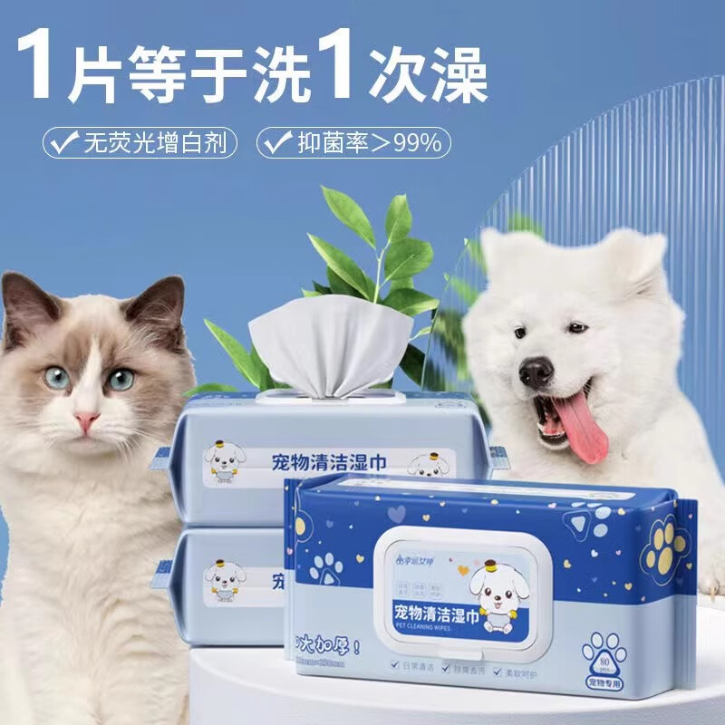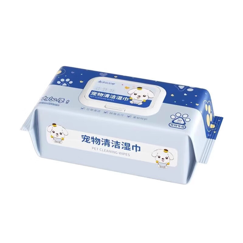 幸运女神宠物清洁湿巾猫咪狗狗除臭去泪痕加大湿纸巾擦脚屁股耳朵下巴免洗 超大包80抽宠物湿巾*5包