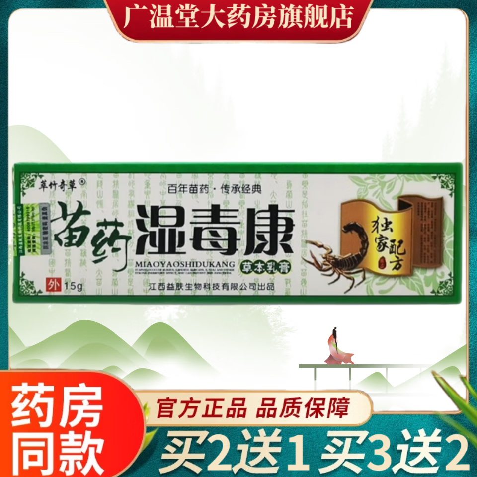 苗通萃竹奇草苗药湿毒康乳膏买2贈1买3贈2手脚大腿内侧脱皮身体湿瘙痒 1盒实惠装