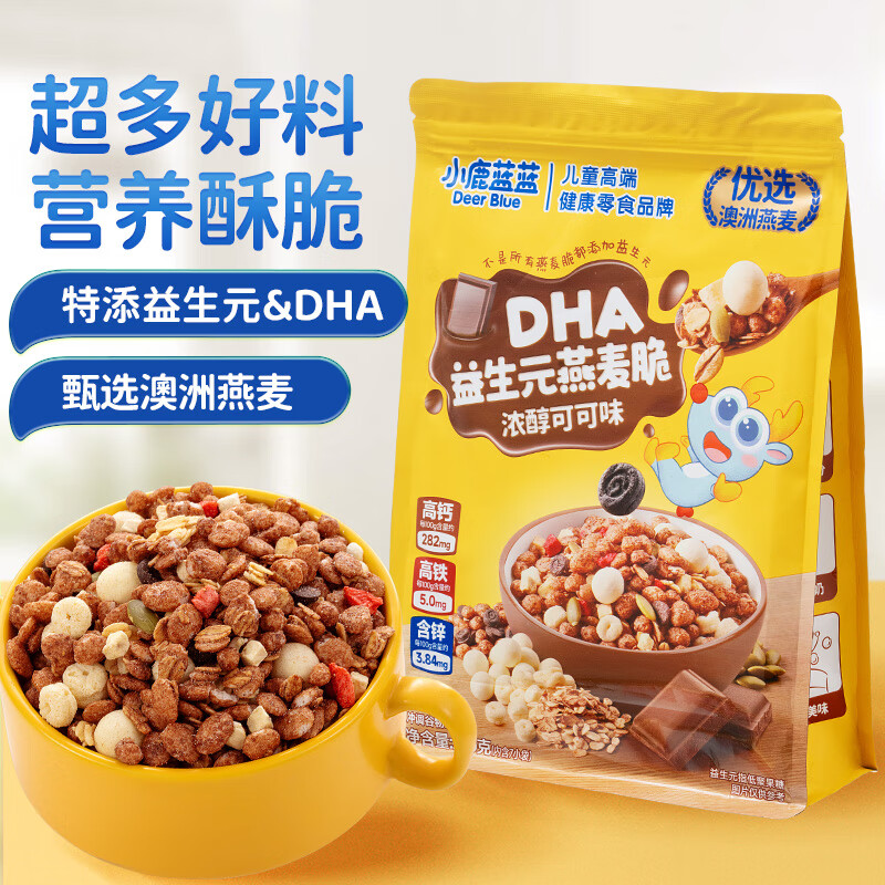 小鹿蓝蓝DHA益生元燕麦脆可可味宝宝零食儿童早餐冲泡燕麦果干即食210g