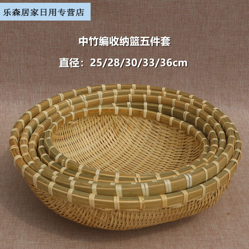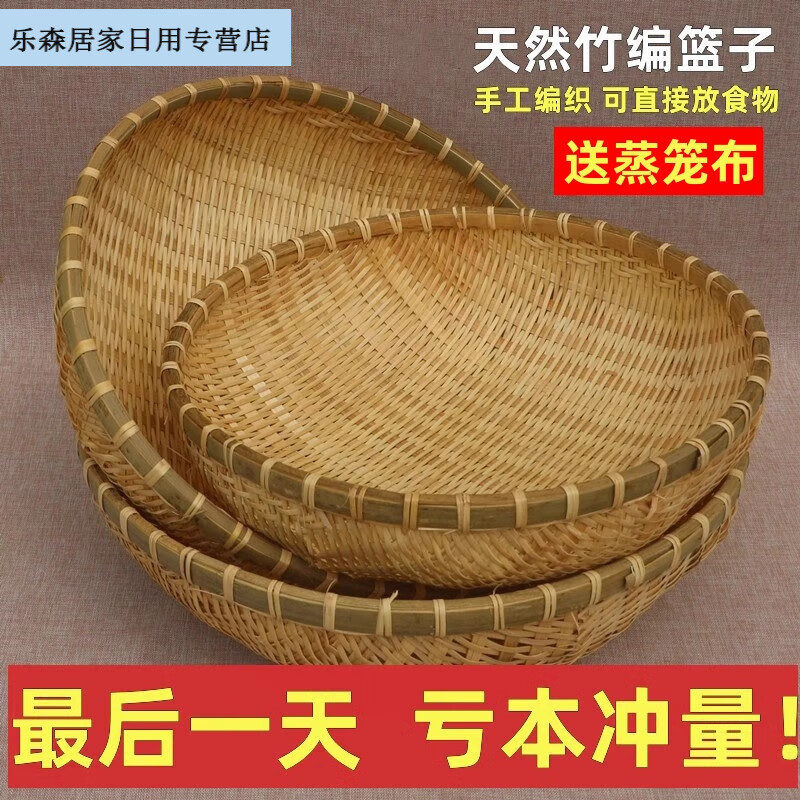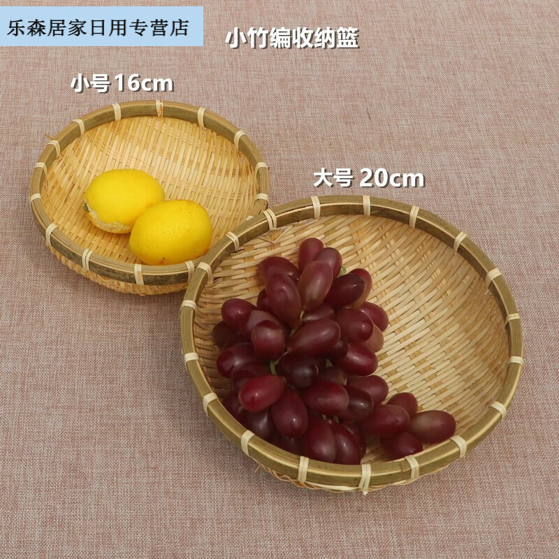 2025新款竹编簸箕馒头收纳筐竹制品篮子竹编筐洗菜沥水淘米篮水的 竹编篮直径16高5cm