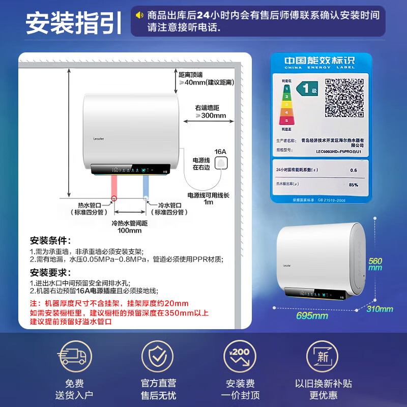 海尔电热水器旗舰店手机扫码,领券购买