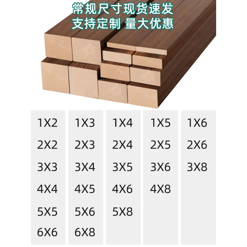 梦茜儿碳化防腐木条木板实木木方松木条子边框木材木料扁条装饰龙的 长度10-厘-米5根 厚度1-c-m x 宽度2-c-m