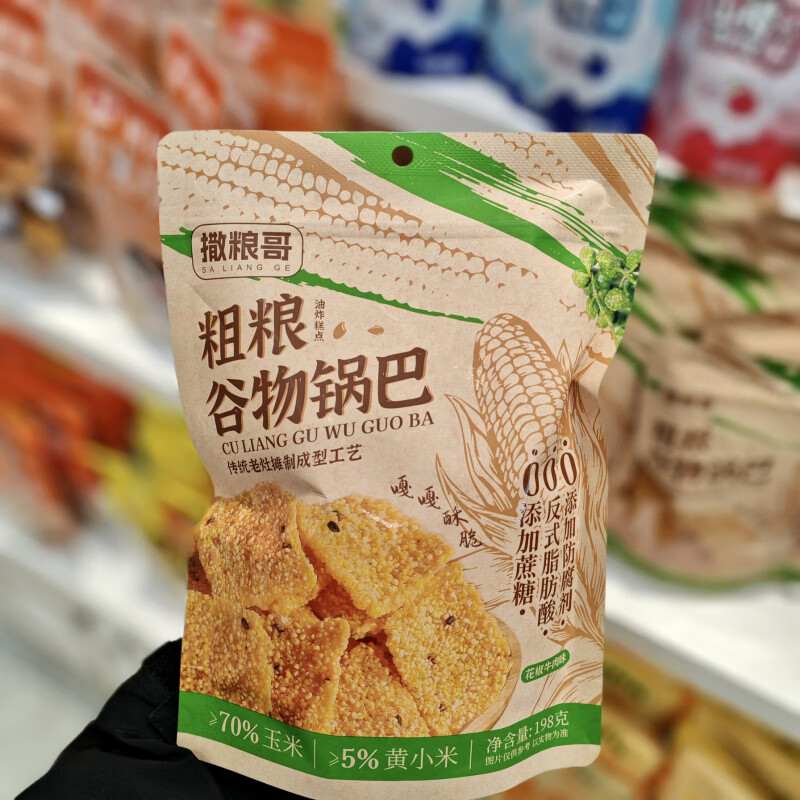 撒粮哥粗粮谷物锅巴原味香辣花椒牛肉味杂粮锅巴 撒粮哥粗粮谷物锅巴198g 原味*1