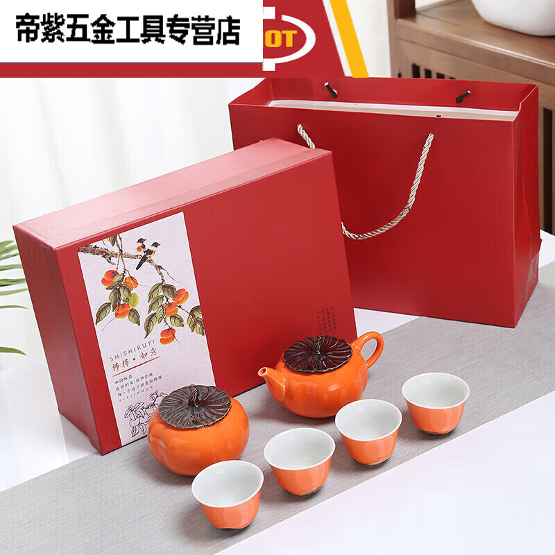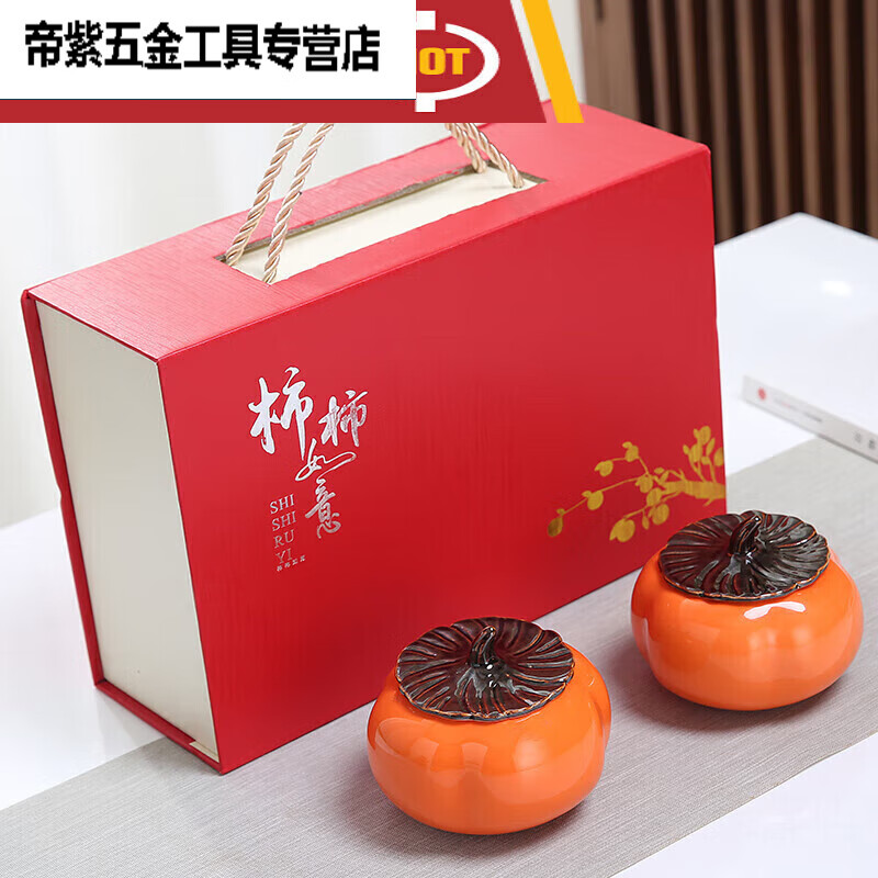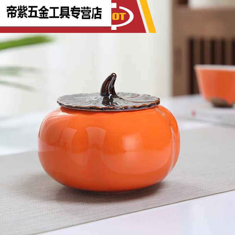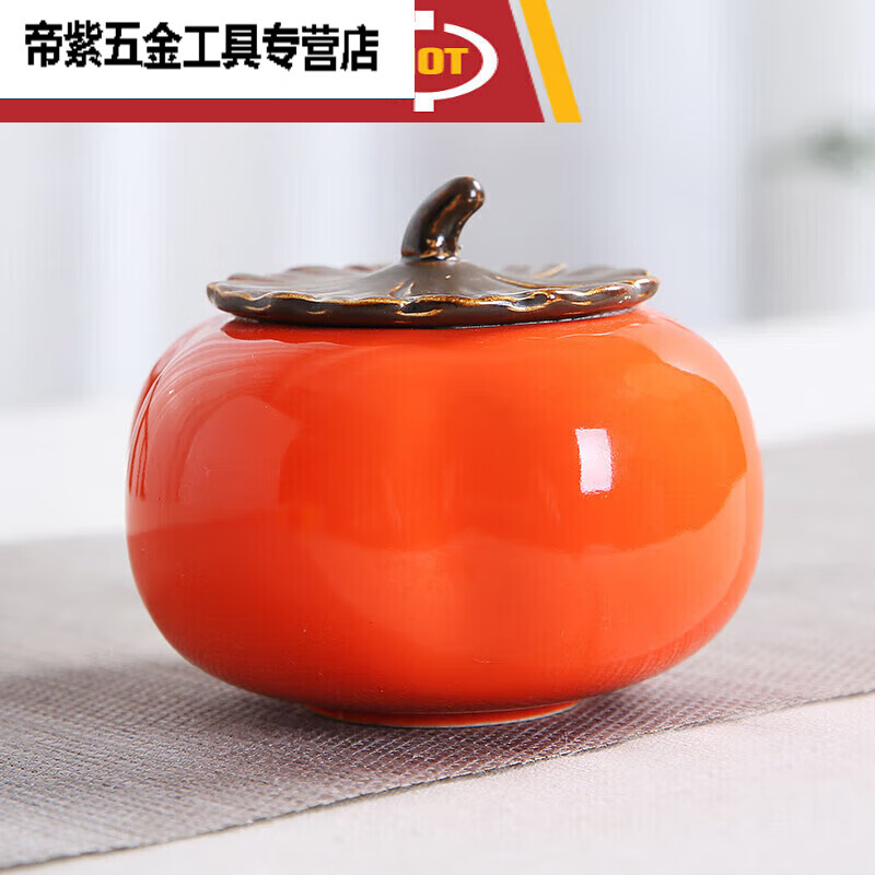 萌依儿柿柿如意陶瓷柿子茶叶罐小号糖果密封罐普洱红茶绿茶空包装的 柿子罐 0ml