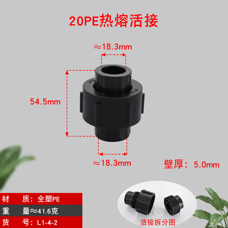 梦茜儿PPR/PE20/25/32/40/50/63/75/90水管热熔管件加厚全塑活接头配的 PE-20全塑活接