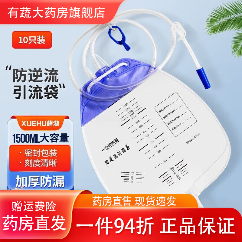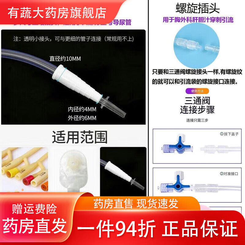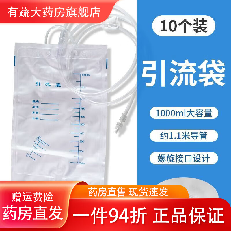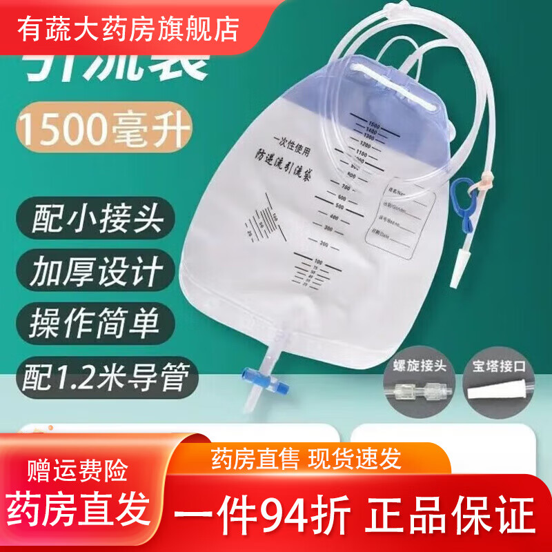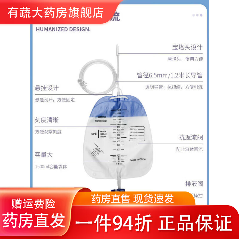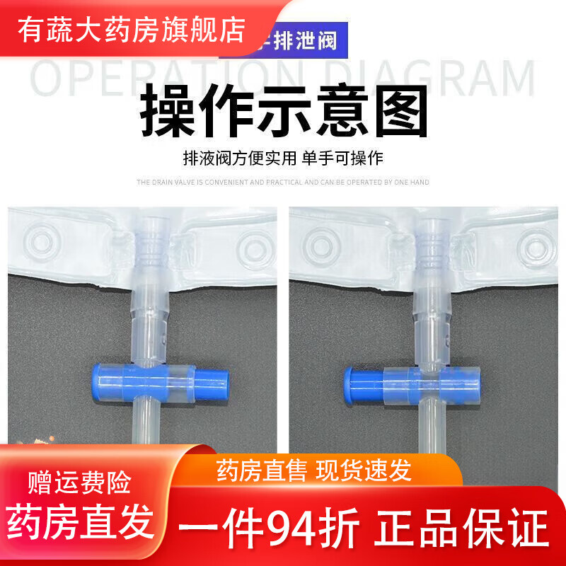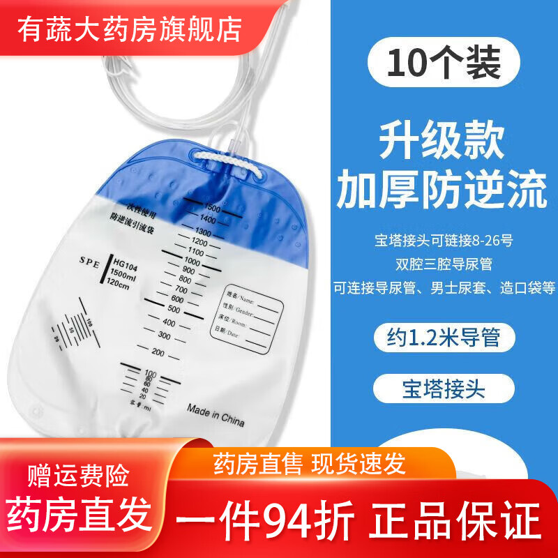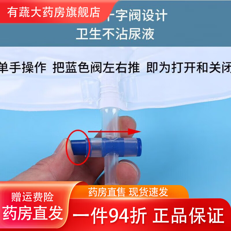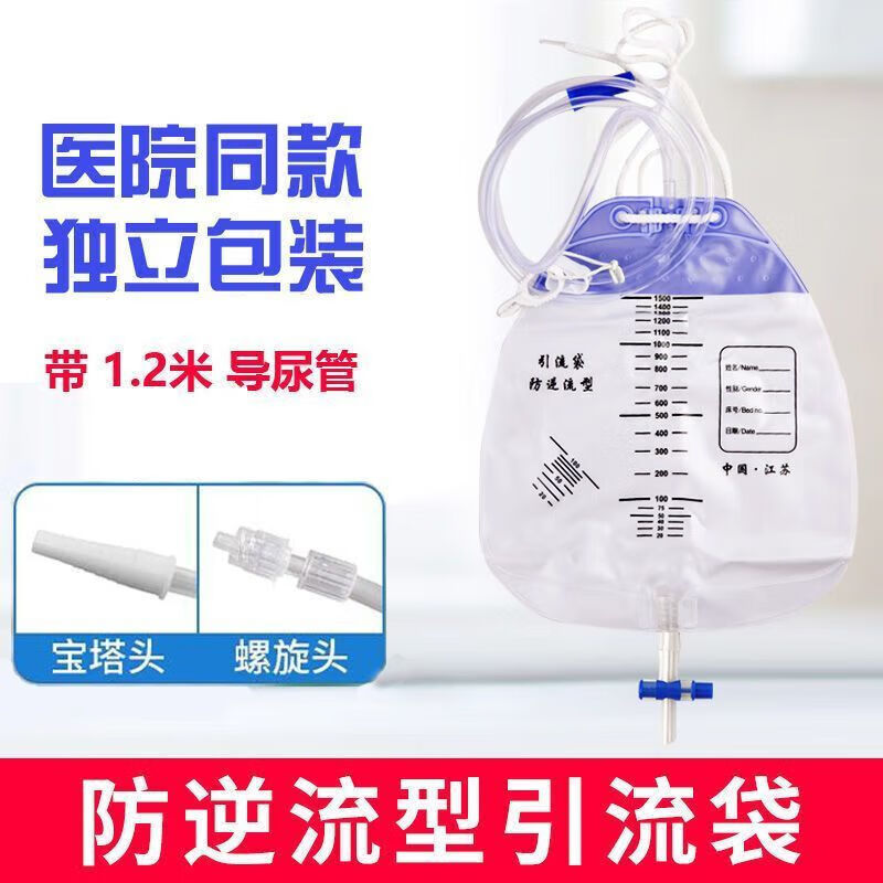 通用尿袋医用一个月换一次一次性防逆流引流袋集病人加厚螺旋头引 螺旋接口1000ml[#1.2米防扭结管] 医院同款[1个]试用款+1棉签