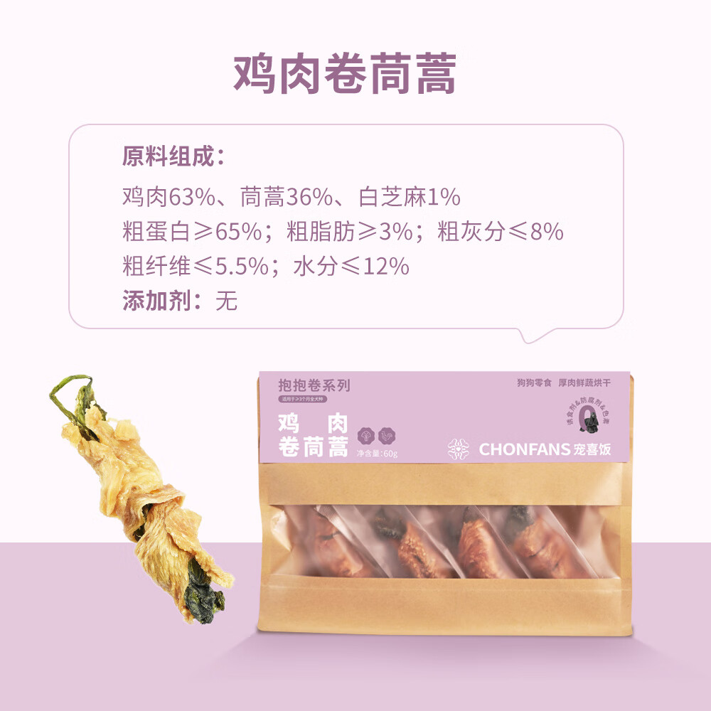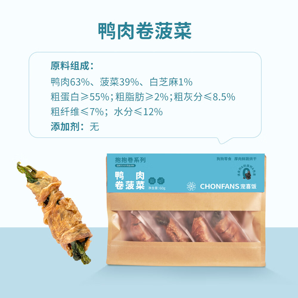 宠喜饭宠物狗狗磨牙肉干成犬幼犬通用训狗奖励滋补零食乌鸡鸭肉鸡肉乌鸡 鸭肉卷菠菜60g