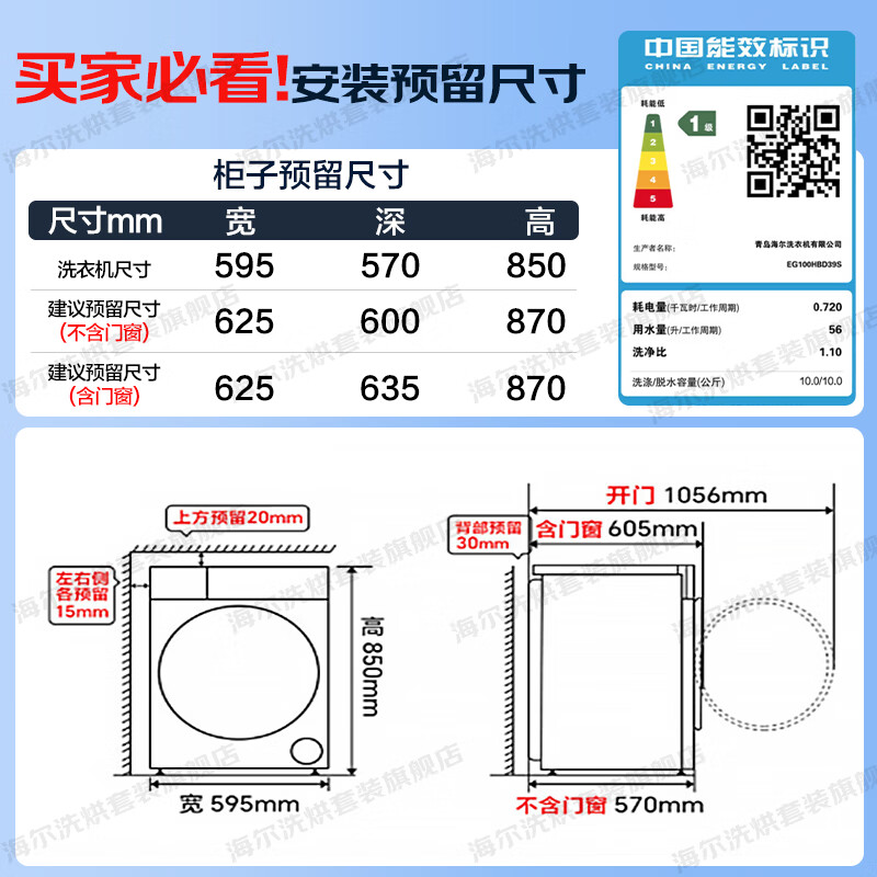 海尔洗烘套装旗舰店手机扫码,领券购买