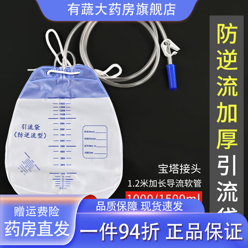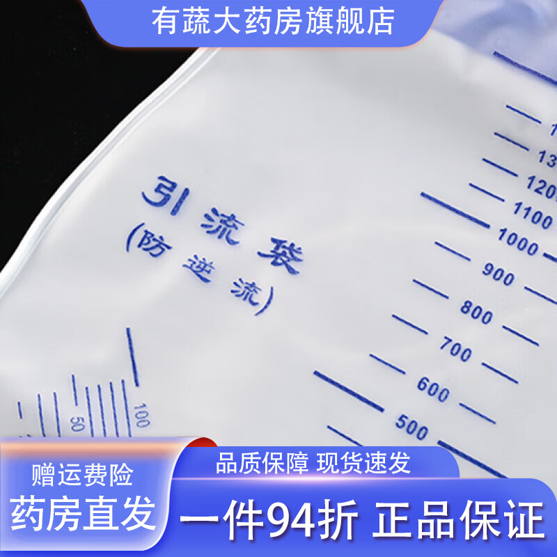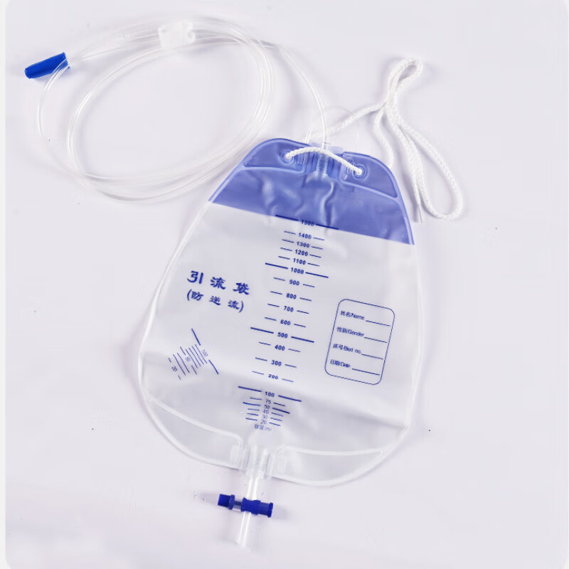 通用医用一次性引流袋防逆流加厚老人集尿袋软管防倒流引流管导尿袋 1个加厚1500ml引流袋