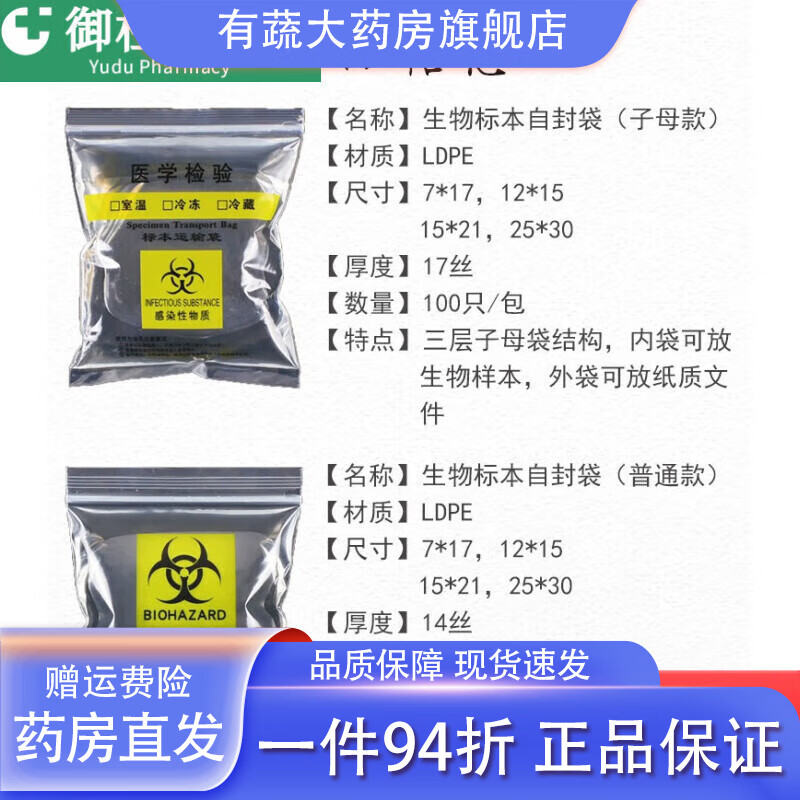 通用医用标本袋核酸样本运输袋病理生物安全自封袋三层检验样品密封袋 5*14 100只x两层普通款