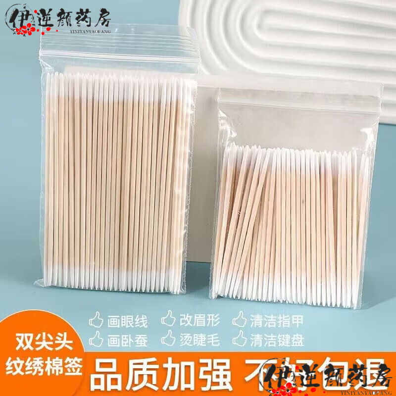 通用细棉签极细医用尖头棉签纹绣专用一次性牙签式小头棉棒超细木棒嘴 消字号卫生棉签-7cm/极细+(尖头+尖头) 97根/1包+消字号+安全无菌+低价