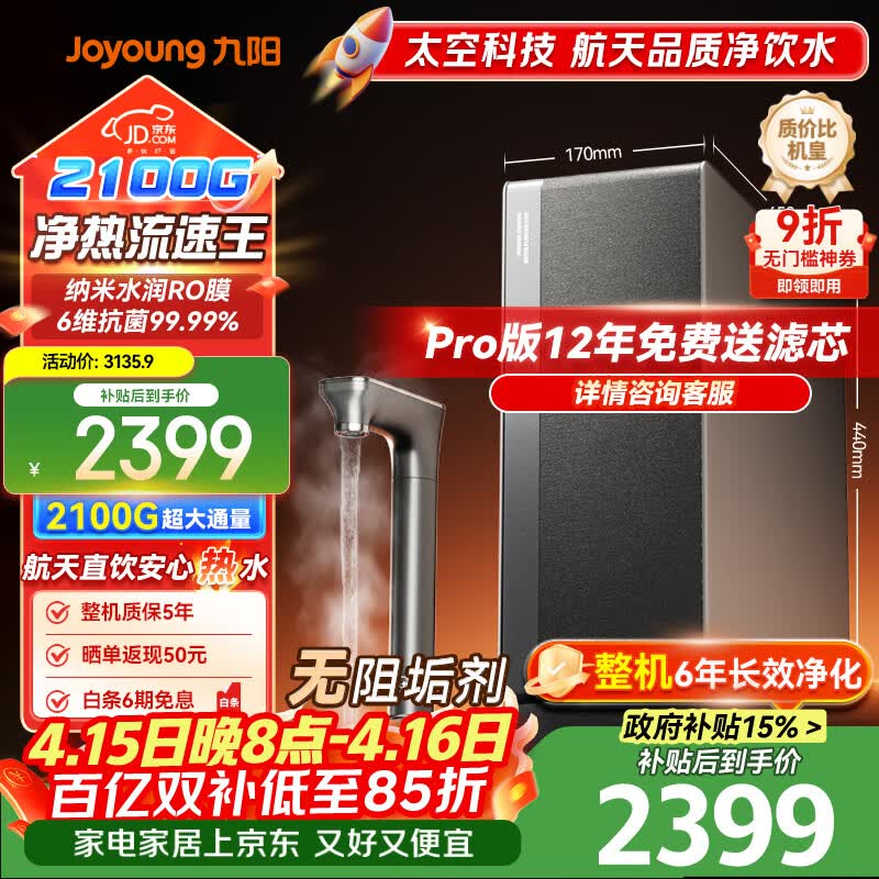 九阳净水京东自营旗舰店手机扫码,领券购买