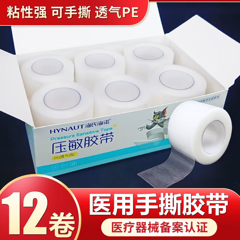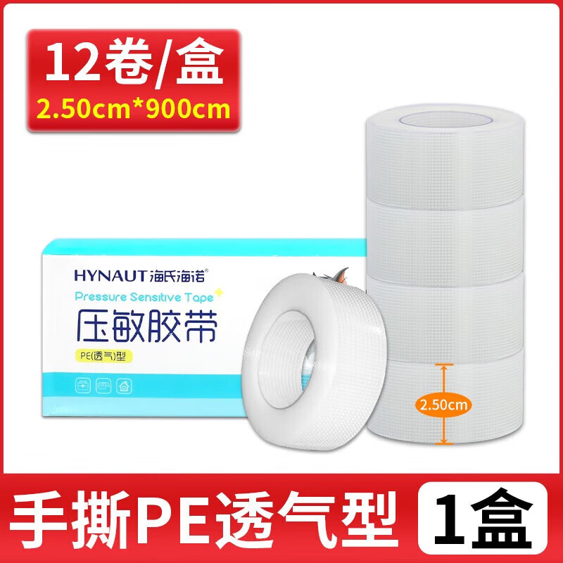 海氏海诺医用压敏胶带可手撕型纸胶布贴PE透气型无纺布透明输液贴伤口包扎 无纺布透气型[5卷独立装]1.25*91
