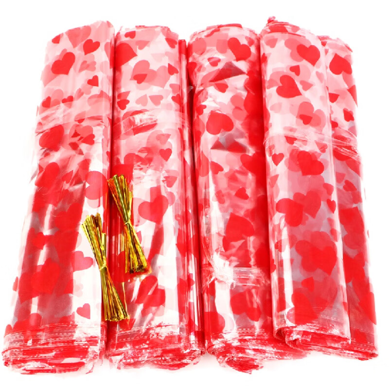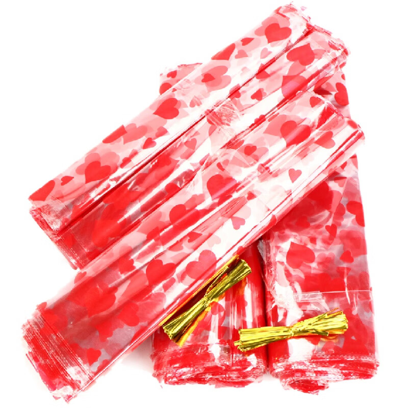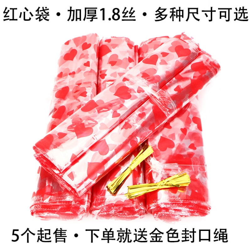 红心塑料袋装宝 红心袋礼品袋装水果装毛绒玩具装礼品装宝装的 35*60cm (送封口扎丝) 20个