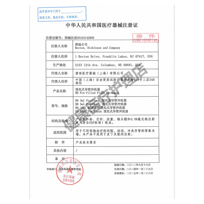 通用预冲充式导管冲洗器PICC中央静脉置管护理留置针 CVC冲管 BD冲管10ml[1支]
