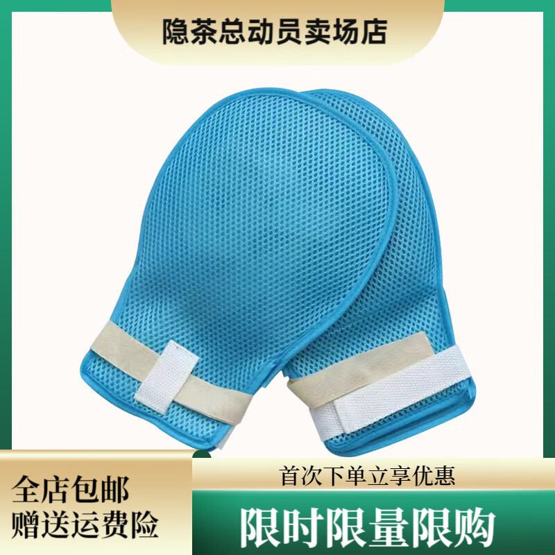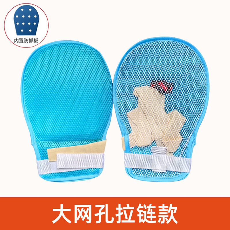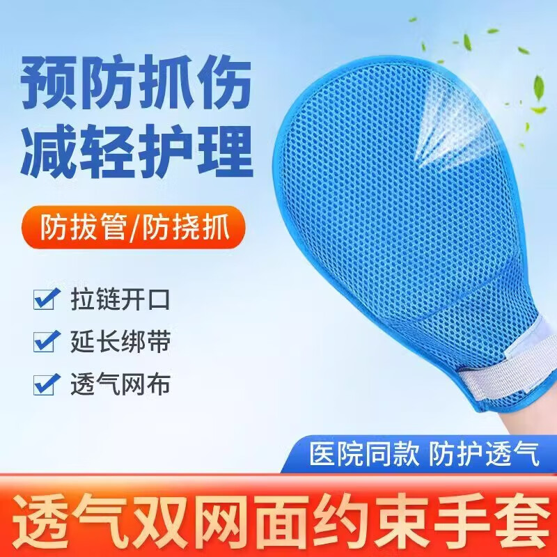 老人约束手套透气防抓挠防拔罐手腕固定带老年痴呆卧床病人束缚套 [四季双面网]无防抓板(1只)