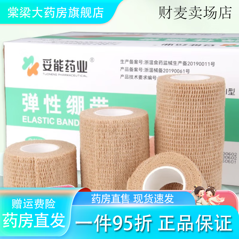 妥能药业妥能弹性绷带纱布胶带固定辅带胶布自粘弹力绷带贴弹性透 2.5cm×450cm[弹性绷带一卷]