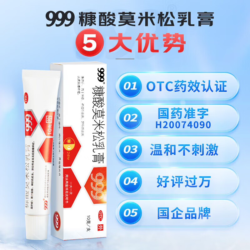 999 糠酸莫米松乳膏 0.1% 10g 湿疹 神经性皮炎 异位性皮炎及皮肤瘙痒症 1盒装【皮肤瘙痒】