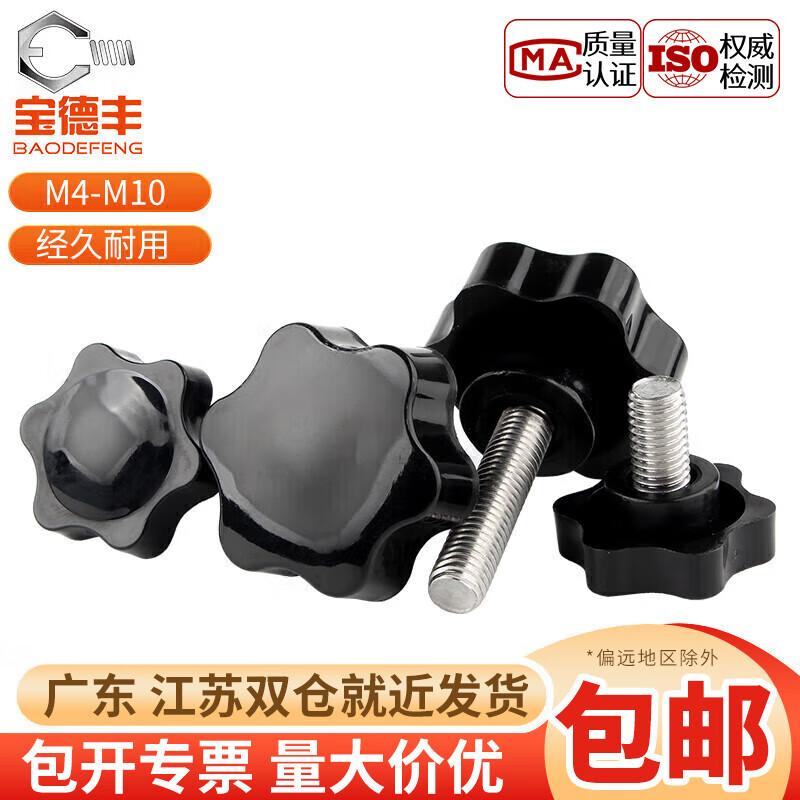 宝德丰 304不锈钢梅花手柄螺丝星形带把手胶木六星旋钮头手拧螺栓大全 M8X20外径32 [2只]