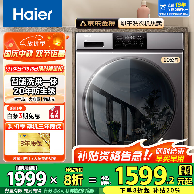 海尔洗衣机旗舰店手机扫码,领券购买
