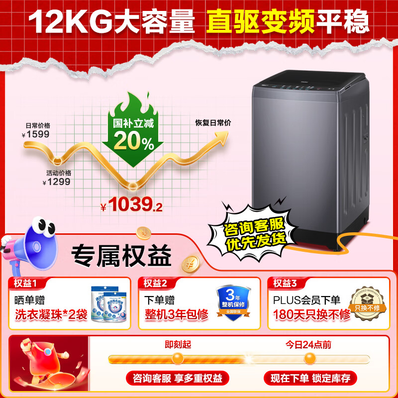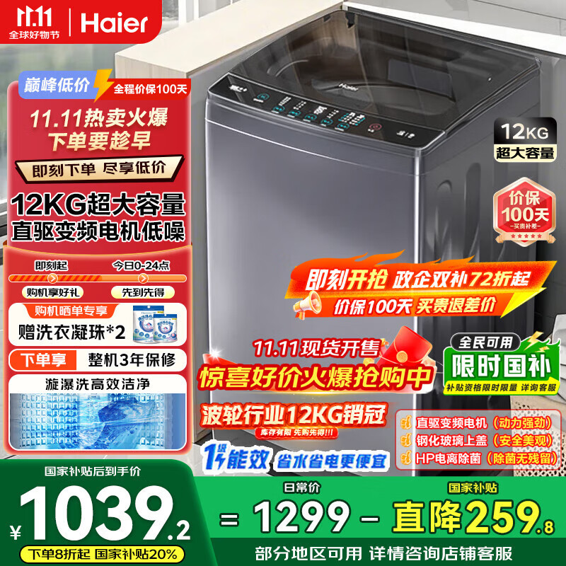 海尔洗衣机京东自营旗舰店手机扫码,领券购买