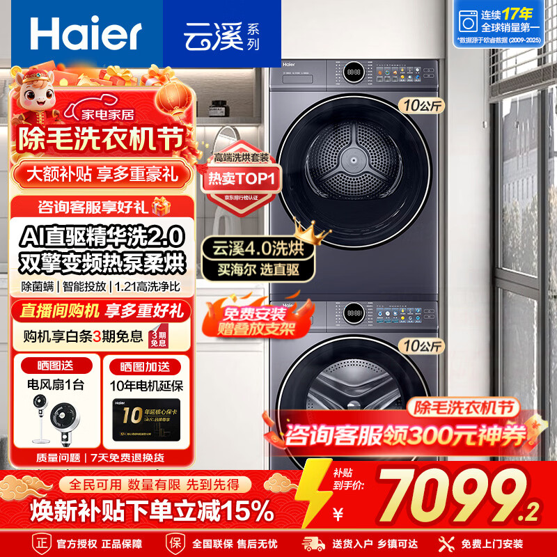 海尔洗衣机旗舰店手机扫码,领券购买