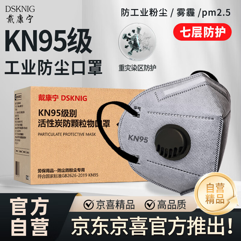 戴康宁n95防尘口罩100%粉尘透气工业粉尘打磨专用活性炭 kn95焊工 7层【活性炭2枚】防尘工业粉尘 戴康宁-【专业防护口罩】