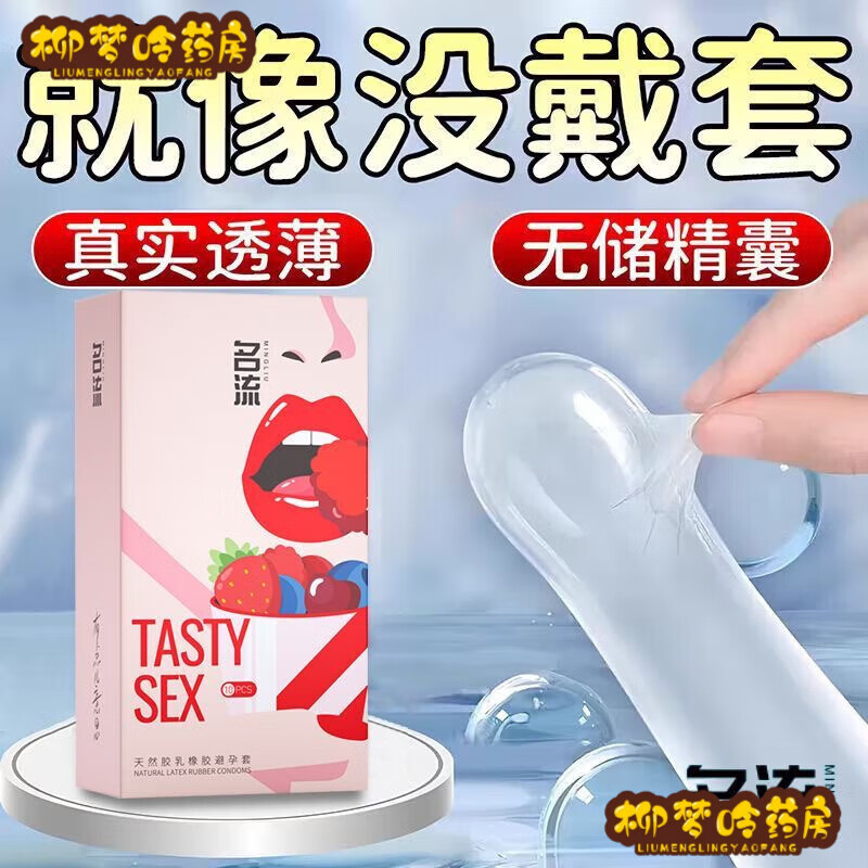 名流口交套 男用口交套套口交套69女性用品舌头 一盒装草莓果粒多套