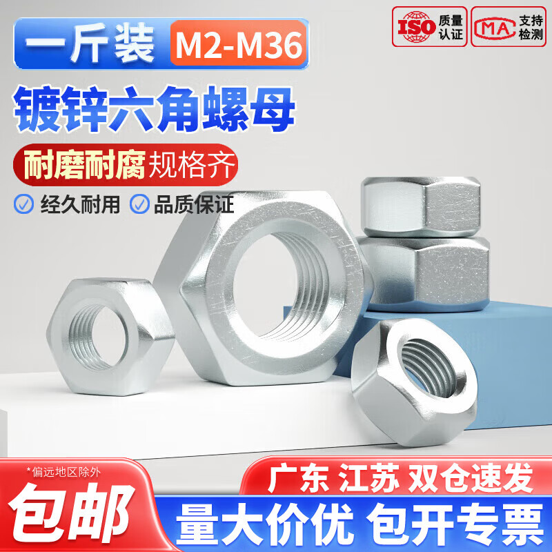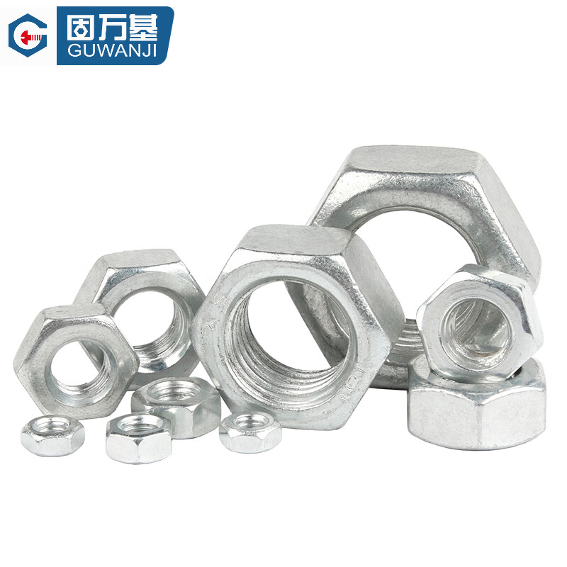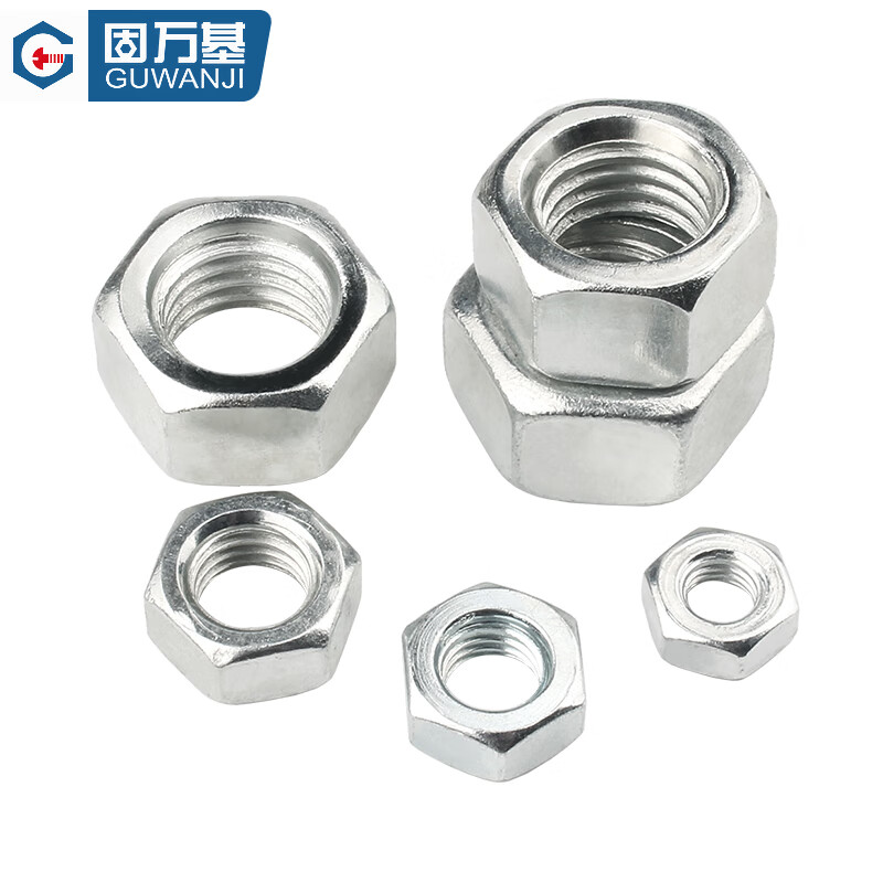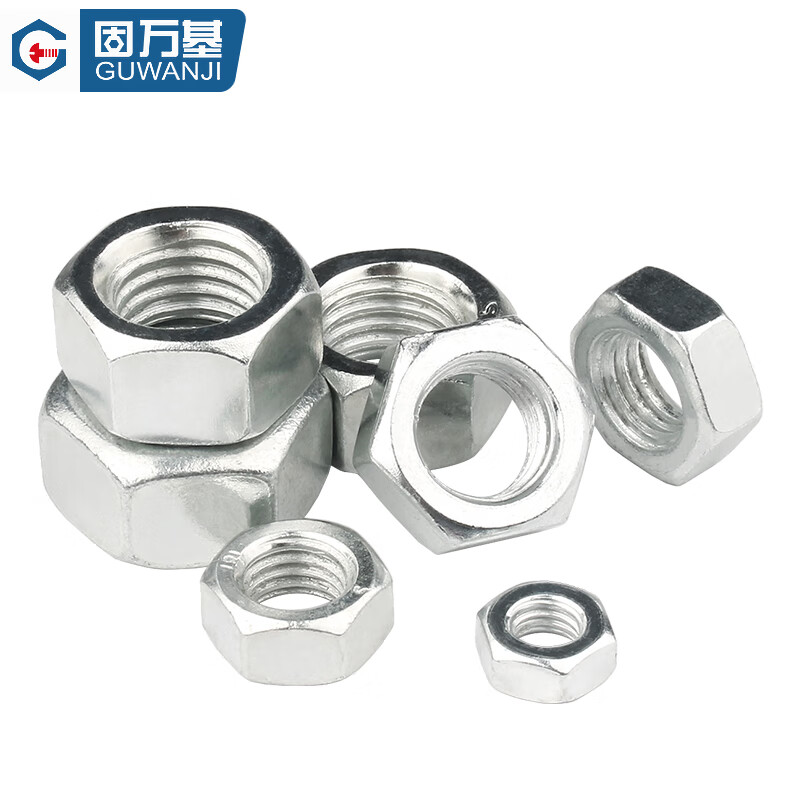 固万基国标4.8级8.8级12.9级六角螺母螺丝帽黑色镀锌镀镍铁螺帽1斤装 铁白锌 M12 约(42只)1斤装