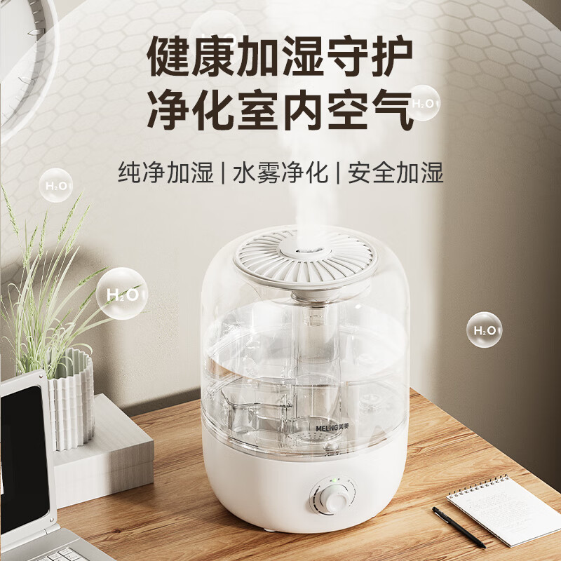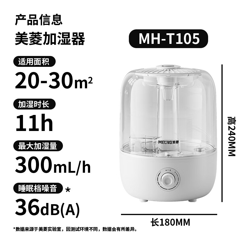 美菱(MeiLing)加湿器空气加湿器 家用轻音卧室大容量大雾量孕妇婴儿净化空气小型空调喷雾上加水加湿器MH-T105