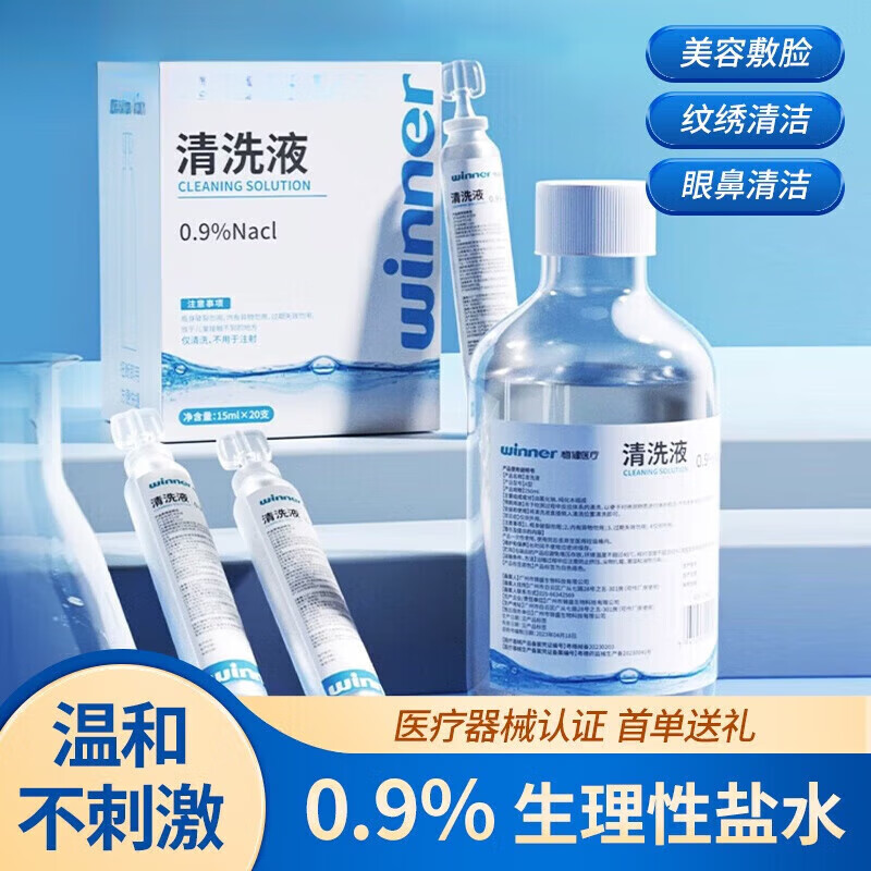 稳健(Winner)生理性盐水医用小支氯化钠清洗液敷脸湿敷洗鼻眼耳道伤口纹绣 【 【小支试用装】15ml5支