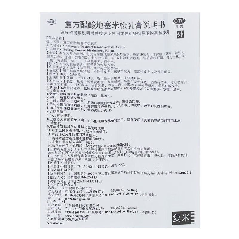 [恒健] 复方醋酸地塞米松乳膏 10g/盒皮炎湿疹皮肤瘙痒神经性皮炎全身止痒膏神经性皮炎慢性湿疹 1盒装