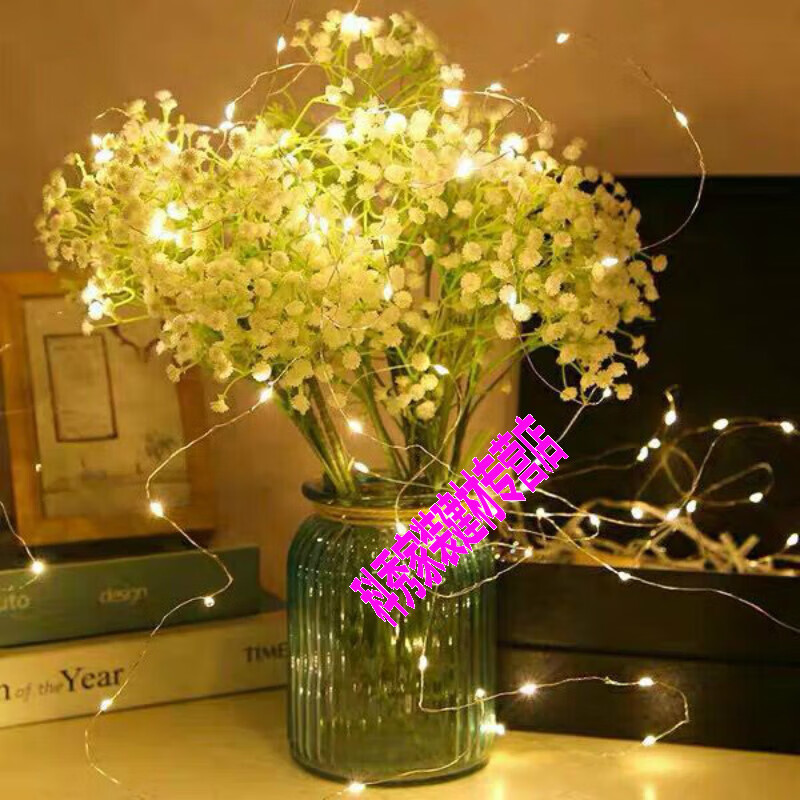 梦茜儿led铜线灯鲜花束灯礼盒串彩灯灯串迷你铜丝小彩灯的 三档调节款0.5米 暖白1条