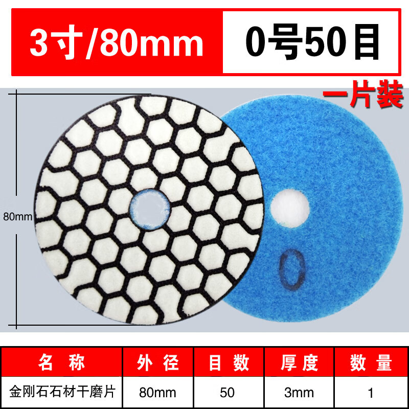 CLCEY角磨机打磨片大理石抛光片石材干磨片玻璃瓷砖石英石的 80mm 0号 50目一片装 80mm 0号