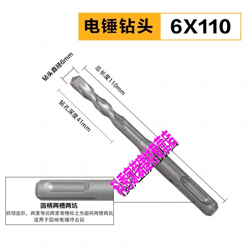 CLCEY电锤冲击钻钻头两坑两槽混凝土圆柄四坑过墙转头圆头加长600的 圆柄6X110