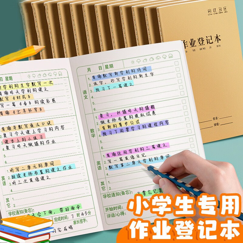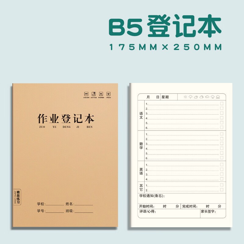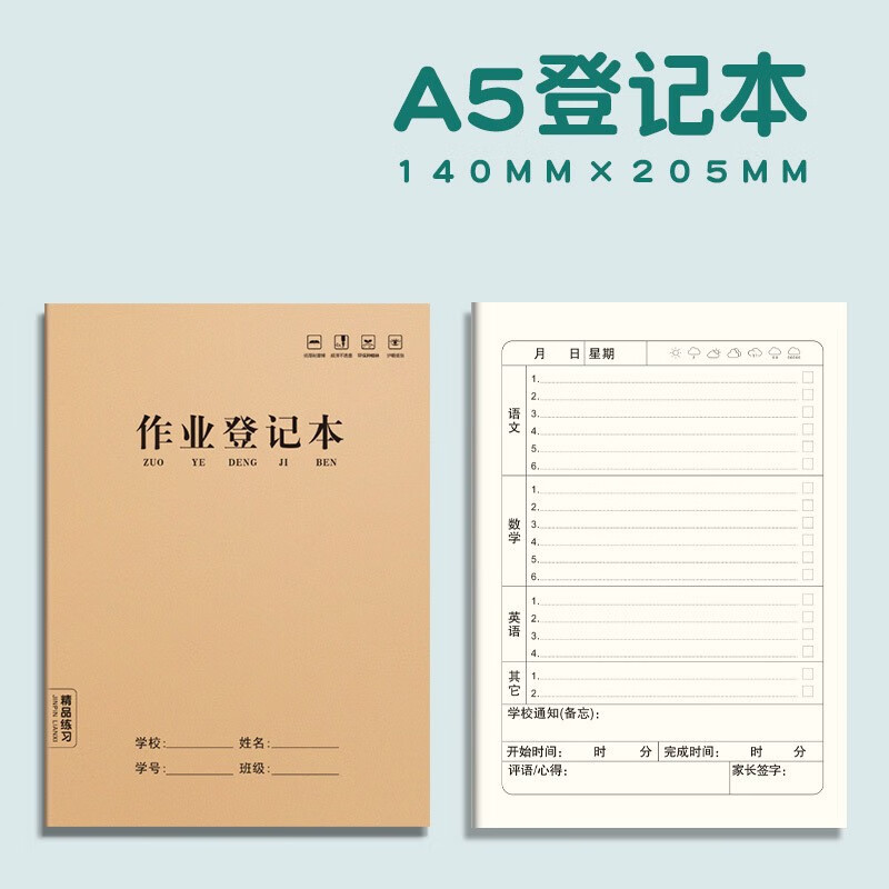 小学生作业登记本家庭作业登记本 小学生用一年级记课后抄作业本记录本神器回家抄写家校联系笔记本的 5本装 作业登记本A5/36张