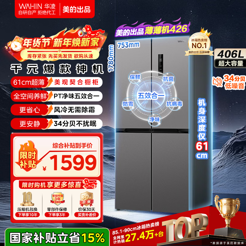 美的冰箱官方旗舰店手机扫码,领券购买