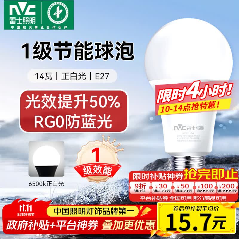 雷士照明京东自营旗舰店手机扫码,领券购买