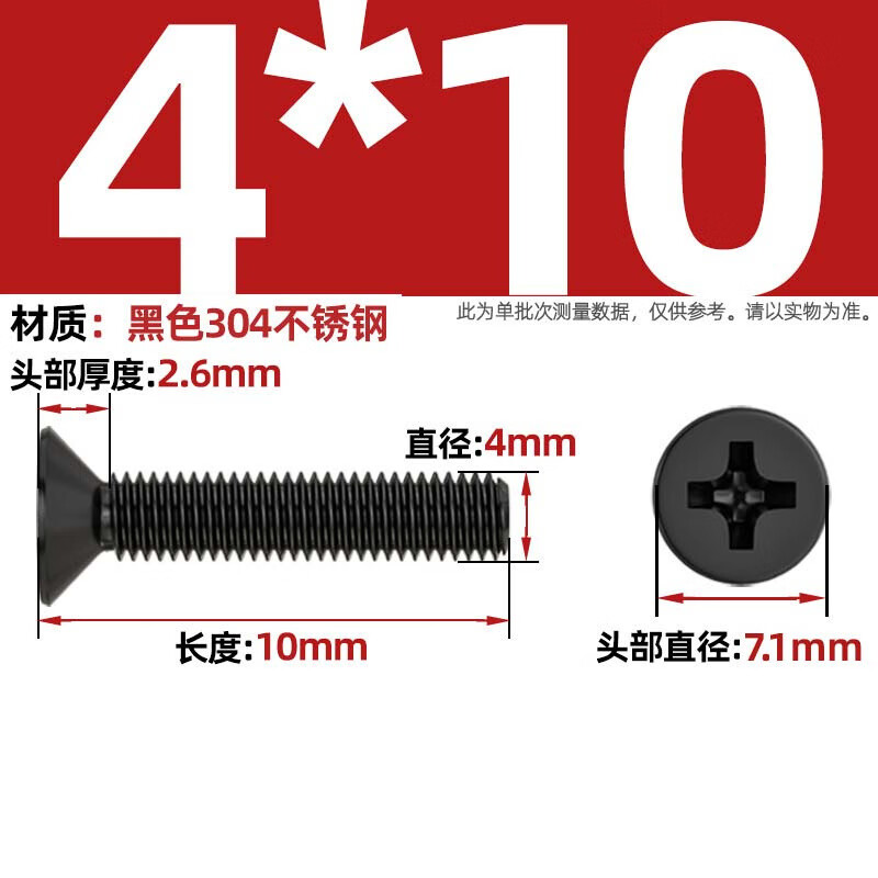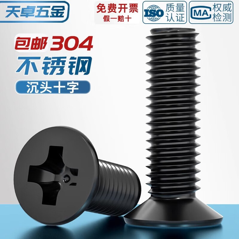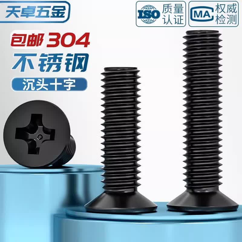天卓五金国标黑色304不锈钢沉头十字螺丝平头镀黑锌小螺钉M2M3M4M5M6M8M10 M4*10-【20个】