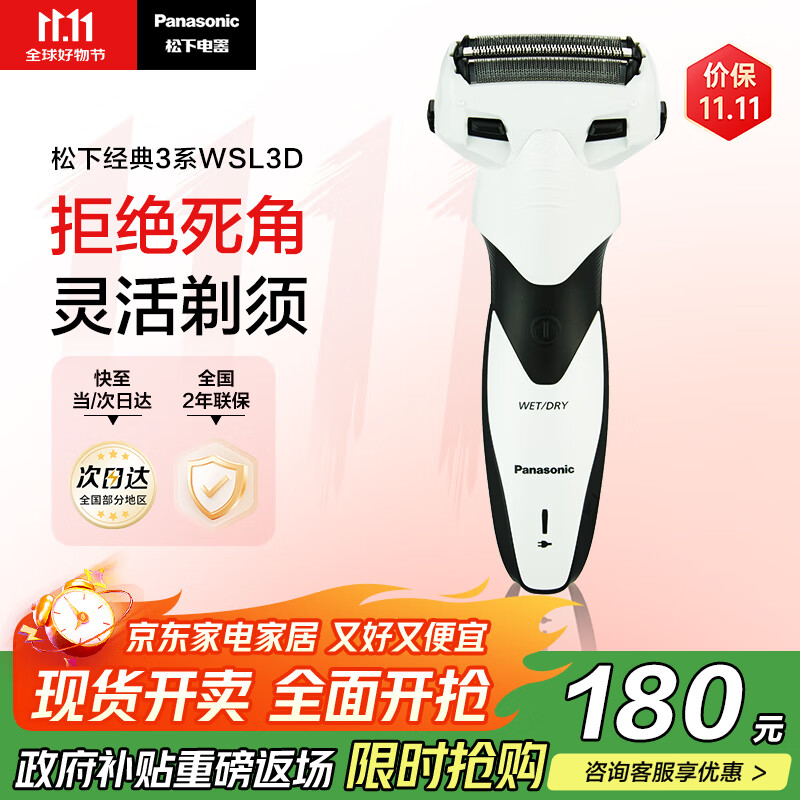 松下(Panasonic)经典3系剃须刀电动往复式男士刮胡刀进口三刀头生日礼物送男友送老公WSL3D