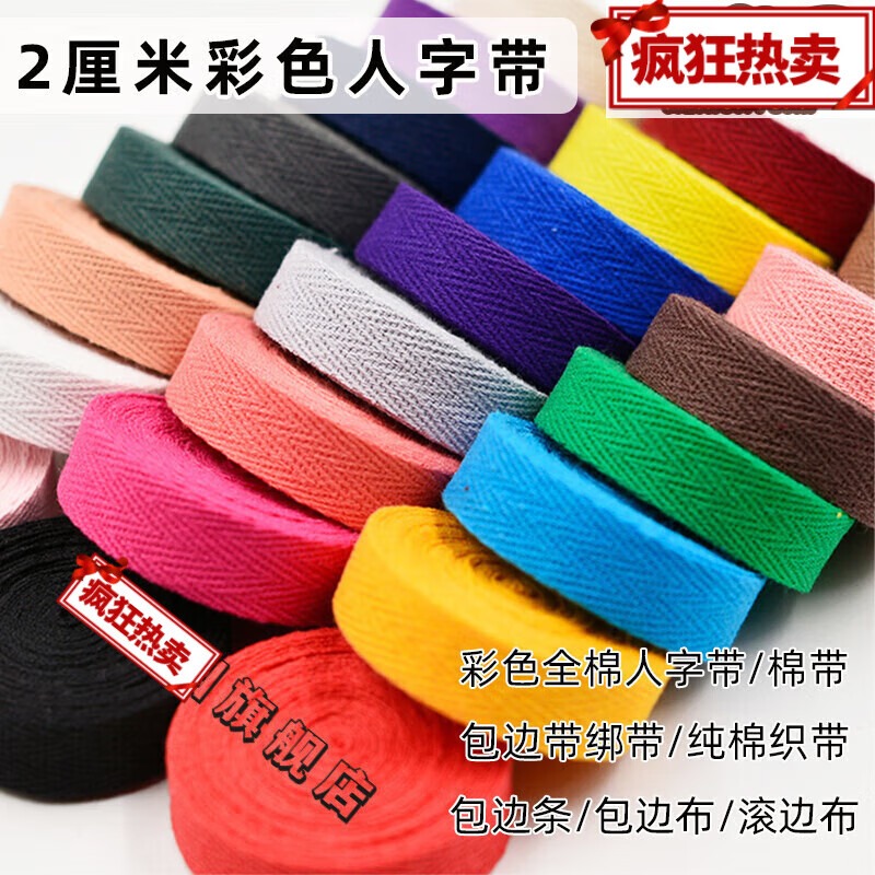 萌依儿(Mengyier)2cm全棉彩色带子布条辅料编织布带包边条人字绑带绳滚边织带布的 随机2-4个颜色混搭2厘米/共发5