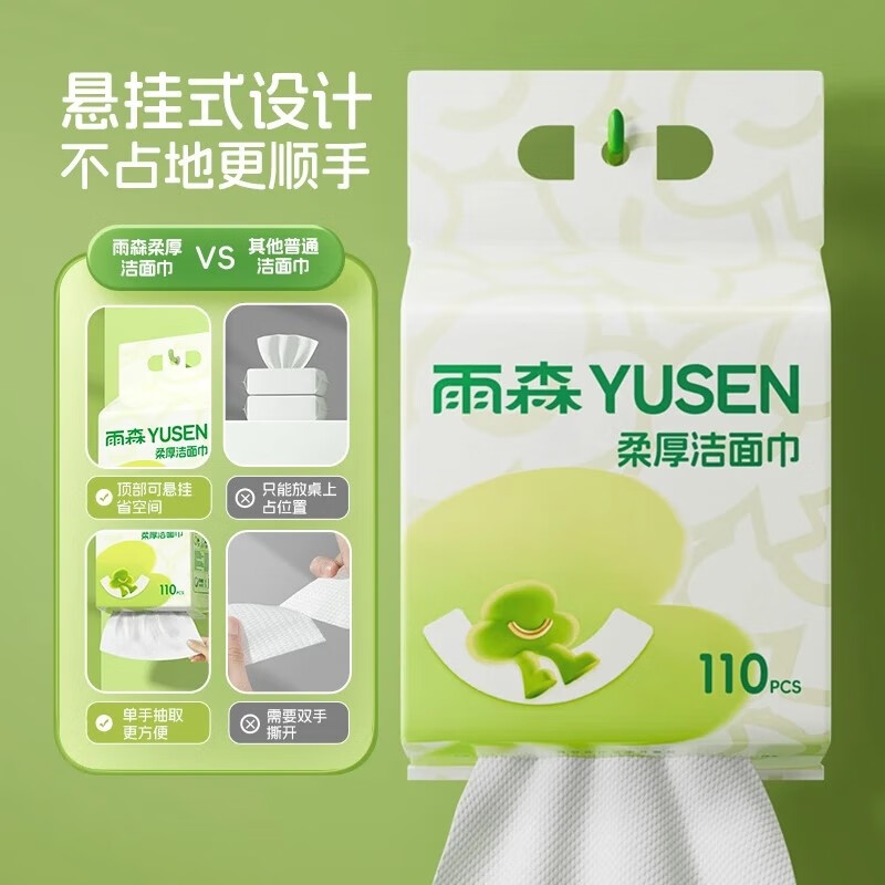 雨森洗脸巾一次性洁面巾家用擦脸巾110抽 110抽(2提)